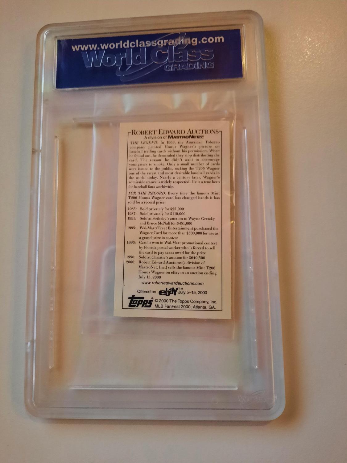 The Topps T-206 Honus Wagner is one of the most iconic and sought-after baseball cards in the world. Originally released in 1909, only a small number of these cards were ever produced, making them extremely rare and valuable. In 2000, Topps decided to commemorate this historic card by creating a limited edition, modern-day version called the 2000 Topps MLB Fanfest T-206 Honus Wagner. This particular card, graded a perfect 10 by WCG (World Class Grading), is currently up for auction on Robert Edward’s Ebay page. The top bidder will have the opportunity to own a piece of baseball history and add this incredible card to their collection. History and Significance: Honus Wagner, also known as the “Flying Dutchman”, was a legendary shortstop who played for the Pittsburgh Pirates from 1900 to 1917. He was one of the first five players to be inducted into the Baseball Hall of Fame in 1936 and is widely considered one of the greatest players of all time. The original T-206 Honus Wagner card is highly coveted by collectors due to its rarity and the story behind it. It is said that Wagner was opposed to the use of tobacco and requested that his card not be included in tobacco packs. As a result, a limited number of cards were produced before the production was halted, making it one of the most difficult cards to obtain. The 2000 Topps MLB Fanfest T-206 Honus Wagner pays tribute to this historic card while also incorporating modern-day design elements. The card features a black and white image of Wagner in his Pittsburgh Pirates uniform, with a gold border and embossed frame for a classic and elegant look. Grading and Rarity: One of the reasons why this particular 2000 Topps MLB Fanfest T-206 Honus Wagner card holds such value is because of its perfect 10 grading by WCG. Grading services like WCG meticulously evaluate cards for their condition and assign a numerical grade, with 10 being the highest possible score. A grade of 10 means that the card is in pristine condition, with no flaws or imperfections. Furthermore, this card is extremely rare. According to the PSA Population Report, there are only 12 2000 Topps MLB Fanfest T-206 Honus Wagner cards graded a perfect 10 by WCG, making it a highly coveted item among collectors. Impact on the Market: The 2000 Topps MLB Fanfest T-206 Honus Wagner card is a significant piece in the baseball memorabilia market. Its release in 2000 sparked a renewed interest in the original T-206 Honus Wagner card, as well as other vintage cards. It also introduced a new generation of collectors to the hobby, as the modern design and limited edition nature of the card appealed to a wider audience. Today, the market for Honus Wagner cards continues to thrive, with the original T-206 Wagner card selling for millions of dollars at auctions. The 2000 Topps MLB Fanfest T-206 Honus Wagner, especially a perfect 10 graded version, is a highly sought-after item and a valuable addition to any card collection. Conclusion: The 2000 Topps MLB Fanfest T-206 Honus Wagner card is a must-have for any serious baseball card collector. Its combination of historical significance, rarity, and perfect 10 grading by WCG makes it a highly desirable item that is sure to appreciate in value over time. Whether you’re a Wagner fan, a lover of baseball history, or simply a collector looking for a unique and valuable piece, this card is definitely worth bidding on in the Robert Edward Ebay auction. Don’t miss your chance to own a piece of baseball history – place your bid now!